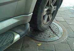 經(jīng)查看,一輛汽車壓住的井蓋破裂,雖不在臨園大廈紅線范圍內(nèi),但在與紅線相鄰的市政公共人行道上,危及路過行人的安全。聯(lián)想報(bào)紙、電視等媒體報(bào)道的因無井蓋致人掉落井內(nèi)傷亡的事件,如果此井蓋掉落……公共安全意識(shí)警醒管理人員報(bào)警求助。接著,管理人員把壓著井蓋的車的司機(jī)從四海公園釣魚場叫回并及時(shí)將車開離井蓋。在查看確認(rèn)井蓋是舊裂痕后,管理人員又通報(bào)雷嶺居委會(huì),要求協(xié)調(diào)市政公司更換破裂的井蓋。