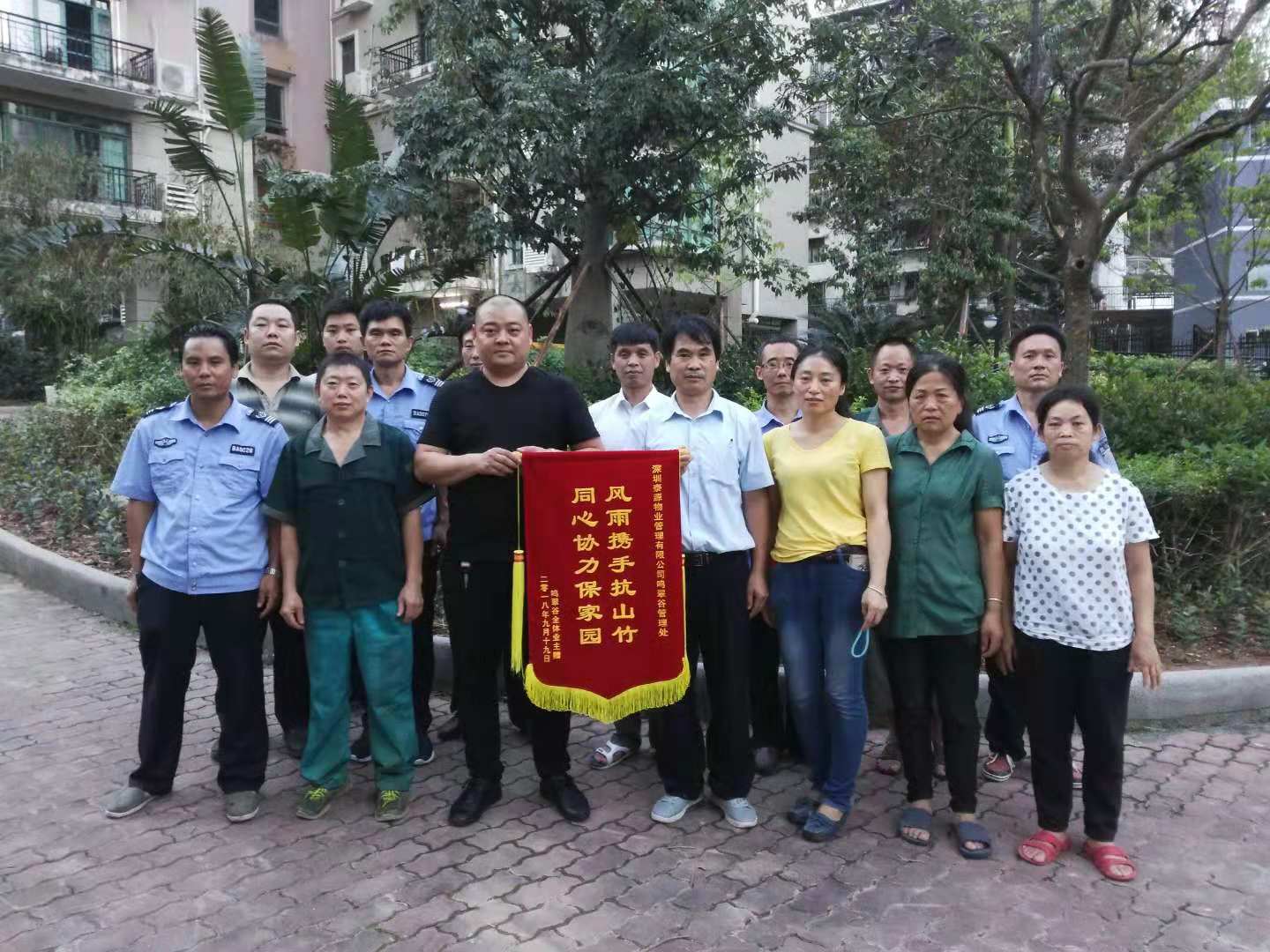 臺風“山竹”9月15-16日襲擊深圳。在公司的部署下,臺風前各小區(qū)按臺風應急預案進入有條不紊防御狀態(tài):公司召開各小區(qū)主任臺風防御動員會,并進行安全隱患排查和處理,各小區(qū)向業(yè)主發(fā)布超強臺風“山竹”防御通知。各小區(qū)同時組織排水設(shè)備檢查、排水管道疏通、防洪沙包準備、樓層門窗巡視、傾斜喬木穩(wěn)固等等。妥善的防御有效地減少了臺風損失。抗臺風期間涌現(xiàn)了一批好領(lǐng)導、好員工,各小區(qū)業(yè)主給予了很高的評價和贊揚。其中,鳴翠谷小區(qū)155戶業(yè)主有92戶自愿捐款9300元,獎勵管理處員工,并授予錦旗表彰;大益廣場業(yè)主委員會專門召開表彰會議,拿出經(jīng)費獎勵表現(xiàn)突出的員工。