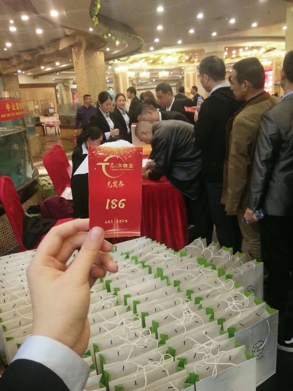 到會(huì)員工陸續(xù)簽到,領(lǐng)取紅酒和幸運(yùn)抽獎(jiǎng)券。