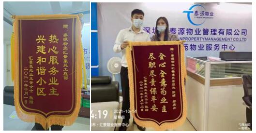 2021年10月12日與10月14日,匯景花園物業(yè)服務(wù)中心分別收到海怡閣16F黃女士和海典閣16F王女士贈(zèng)送的兩面錦旗。