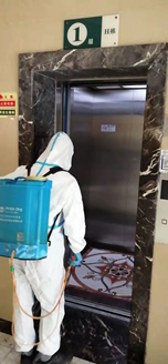各項目嚴格落實高頻率消毒消殺作業(yè),電梯、大堂、快遞架、居家留觀戶、兒童游樂設施、健身器材等等重點部位加大消毒頻次,有效阻擋疫情傳播。