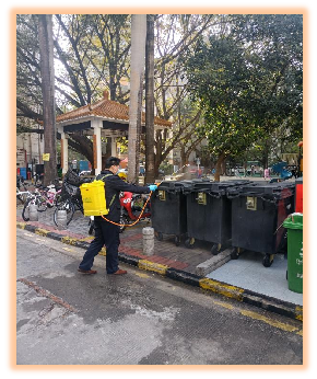 圖為 匯景豪苑管理處為小區(qū)地面進行日常消毒