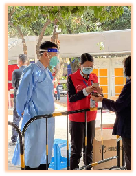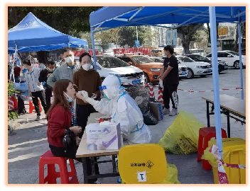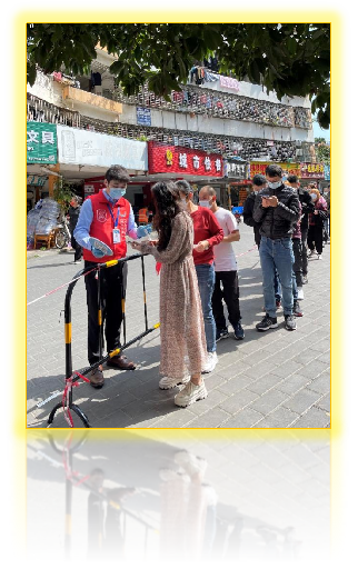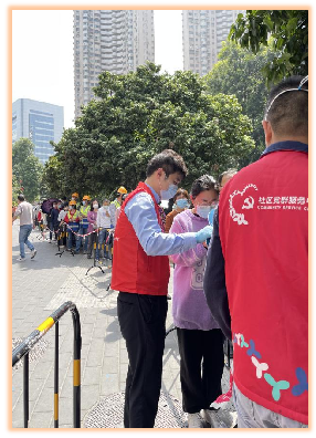 圖為 入黨積極分子陳浦同志協(xié)助科技園社區(qū)指揮核酸檢測工作