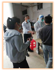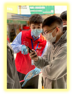 圖為 預備黨員于文曉同志協(xié)助華林社區(qū)工作站指揮防疫工作