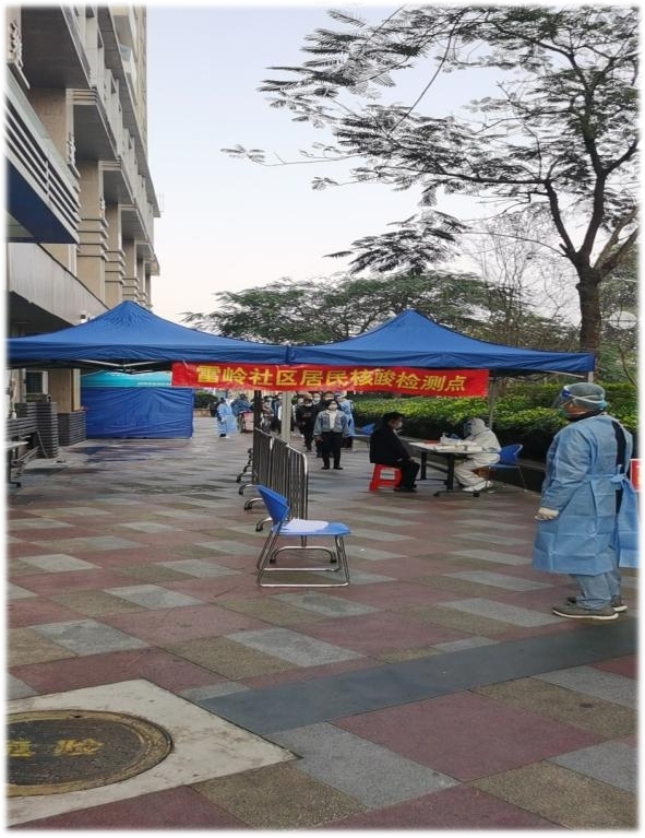 圖為 雍景軒管理處協(xié)助雷嶺社區(qū)核酸檢測工作