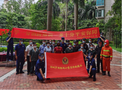 消防水帶操持示范與實操 滅火器實操演練 演練結(jié)束后,消防救援站人員、業(yè)主委員會主任與參演人員合影留念