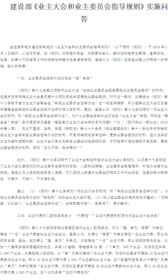 建設(shè)部《業(yè)主大會(huì)和業(yè)主委員會(huì)指導(dǎo)規(guī)則》實(shí)施問(wèn)答